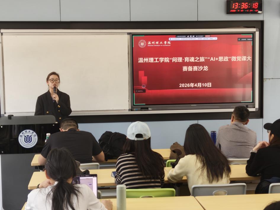 4月10日下午,温州理工学院"问理·育魂之旅""AI+思政"微党课大赛备赛沙龙在教2B-105教室举行。文学与传媒学院陈畅老师受邀指导,马克思主义学院林浩卓老师主持,50余名师生参与沙龙,共同探索人机协作新模式,赋能思政教育创新发展