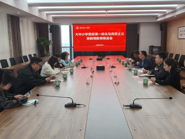 4月16日上午,温州理工学院大中小学思政课一体化马克思主义宗教观教育推进会在行政楼A806会议室举行。温州市教育局高教处王海舟、温州湾区实验中学、温州市职业中等专业学校、温州护士学校、温州第二十二中学、虹桥一小等大中小学思政课一体化联盟体单位代表出席,马克思主义学院学术院长陈林主持会议,马克思主义学院刘尚励教授作前期工作汇报。