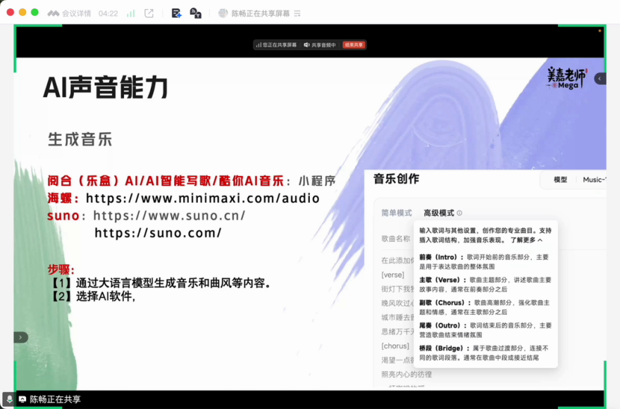 本次培训特邀专业讲师陈畅担任主讲,采用“理论引导+实战操作”相结合的模式,系统性地讲解了AIGC技术在短视频创作全流程中的应用。培训内容紧扣大赛要求,涵盖了分镜绘制、提示工程、AI文生图与图生图技术、虚拟数字人创建、AI视频生成、AI声音技术以及智能剪辑技巧等核心模块。讲师通过腾讯元宝、即梦、可灵、豆包、海螺AI、剪映等多种前沿AI工具平台,进行了深入浅出的讲解和直观生动的演示,引导学员从零开始,逐步掌握利用AI工具高效生成、优化思政主题视觉内容的关键技能。