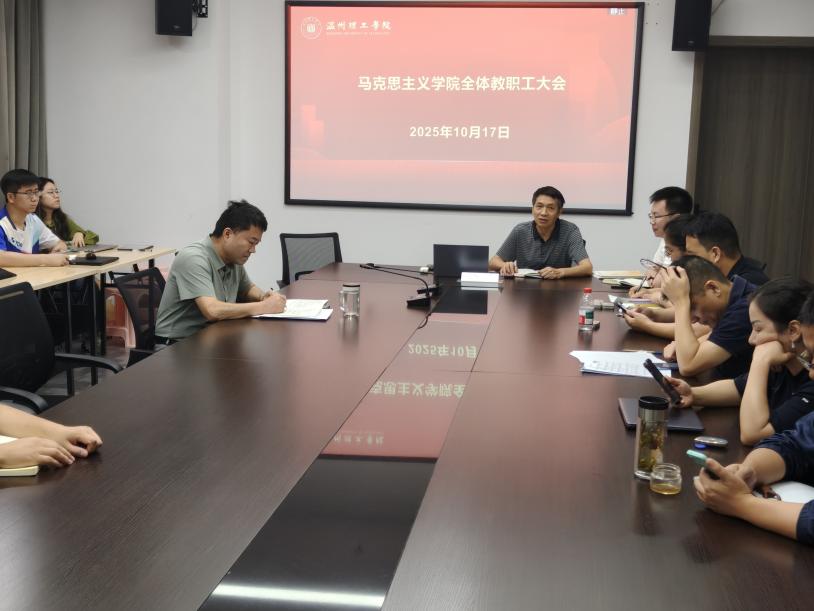 10月17日下午,温州理工学院马克思主义学院在行政楼B615会议室召开全体教职工大会。会议由学院副书记副院长刘尚励主持,学术院长孙武安、副院长张琼以及全体马院教职工参加本次会议。会议围绕学院教学工作安排、教学质量提升、科研工作推进等多项内容展开深入研究和部署。