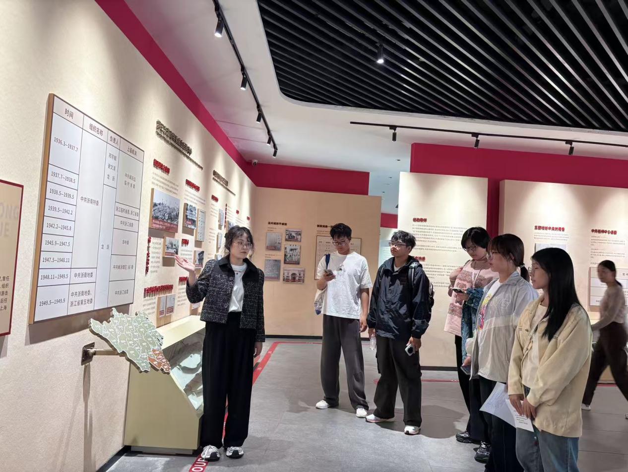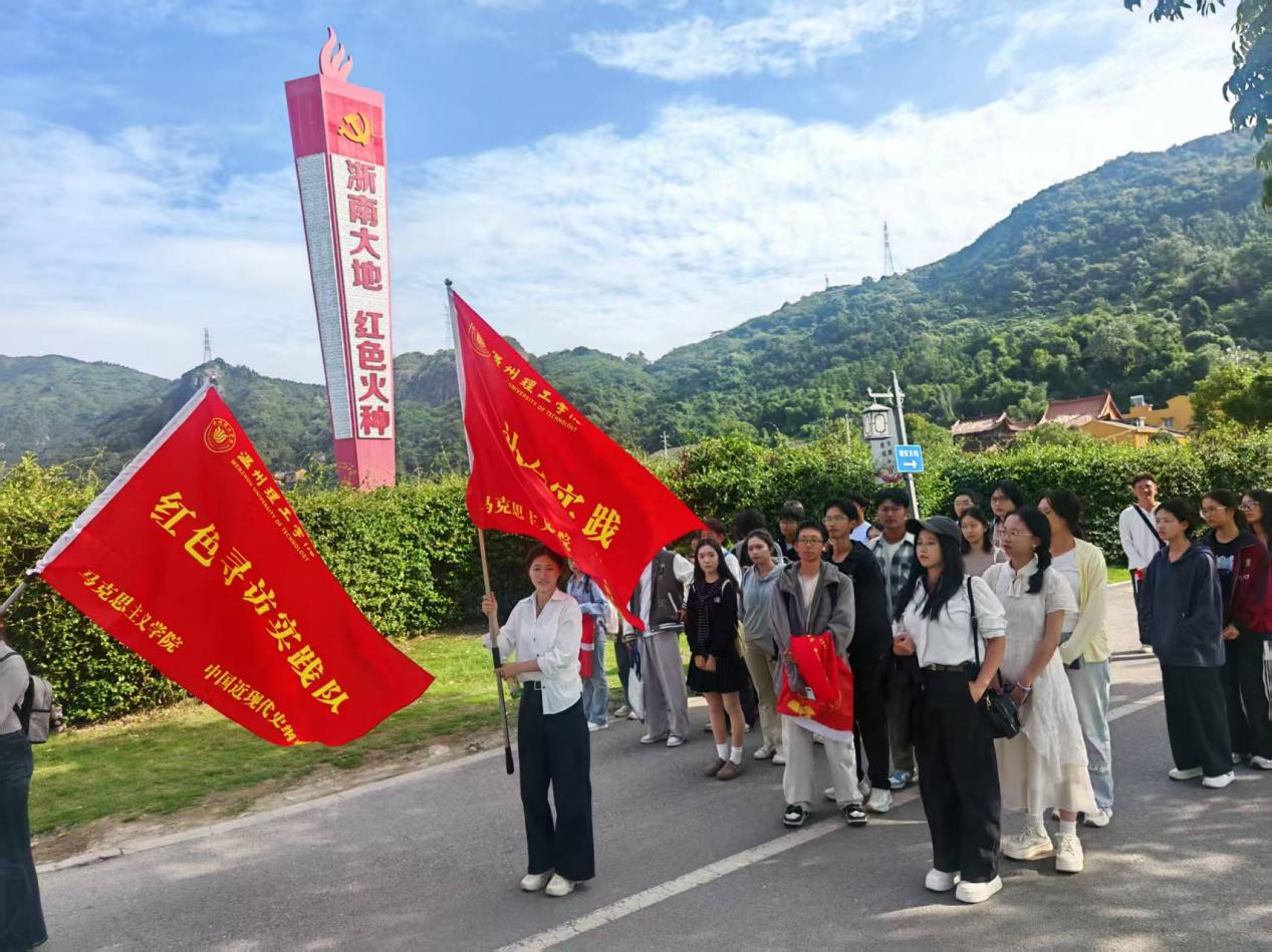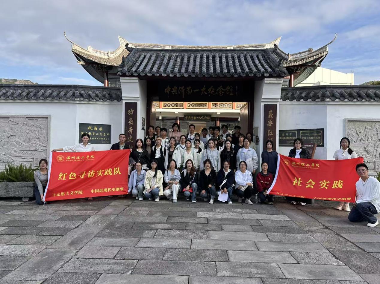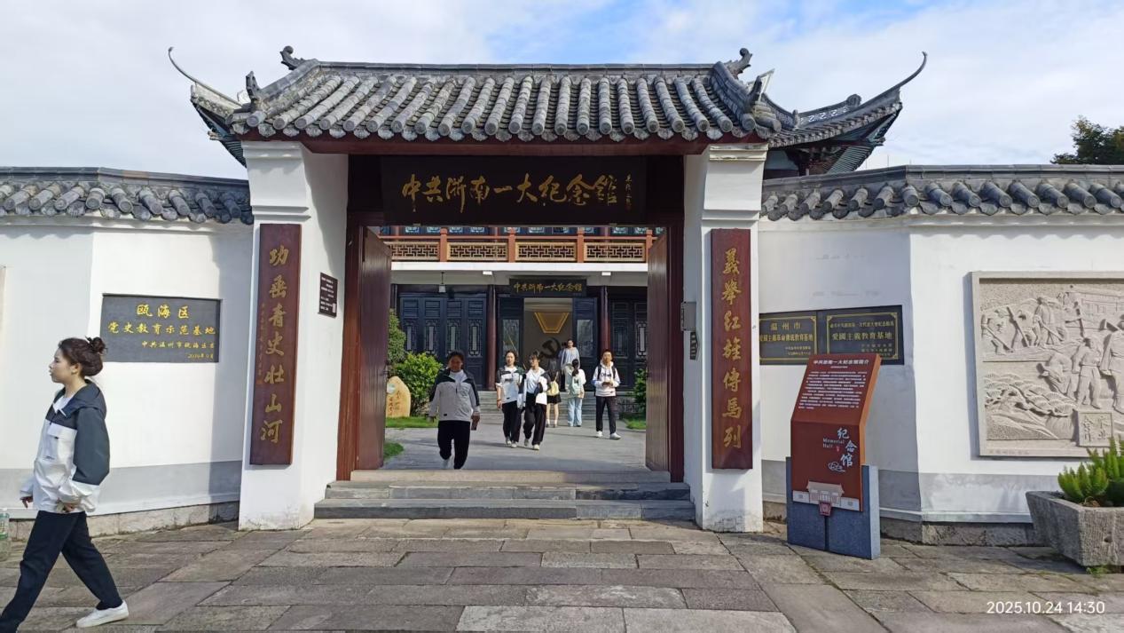 2025年10月24日的温州市瓯海区仙岩街道,秋风包裹着历史的厚重感。温州理工学院马克思主义学院老师徐旭、牟宏达组织2025级大一部分新生走进浙南一大纪念馆,以“追寻浙南火种,传承革命精神”为主题,通过实地走访、场景体验、历史回顾等形式,在展陈与故事里,开启一场沉浸式的红色寻根问源之旅。