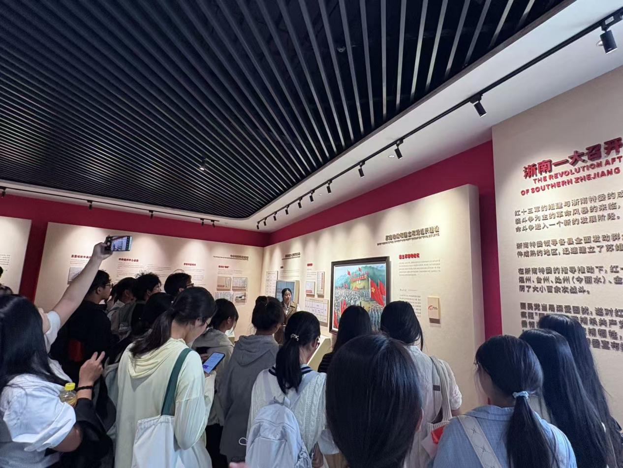 离开前,大家在“中共浙南一大纪念馆”的大门前合影。两位老师与38名同学的身影,与红色场馆相辉映,成为当天最鲜活的“传承”注脚。这场红色寻访之旅,不仅让历史知识变得可触可感,更在青年心中播下了“坚守初心、勇担使命”的种子。