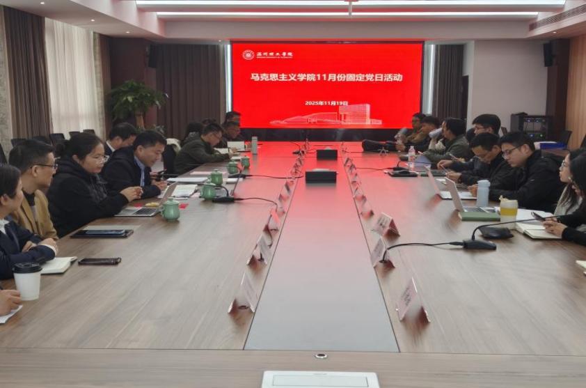 为深入学习贯彻党的二十届四中全会精神,推动理论武装与实践转化深度融合2025年11月19日下午,温州理工学院马克思主义学院开展“深悟精神实质,勇担‘十五五’奋进新使命”主题党日活动。校党委书记陈永光出席活动,活动由马院党总支副书记副院长刘尚励主持,马院学术院长孙武安、副院长张琼和全体党员教师参与。