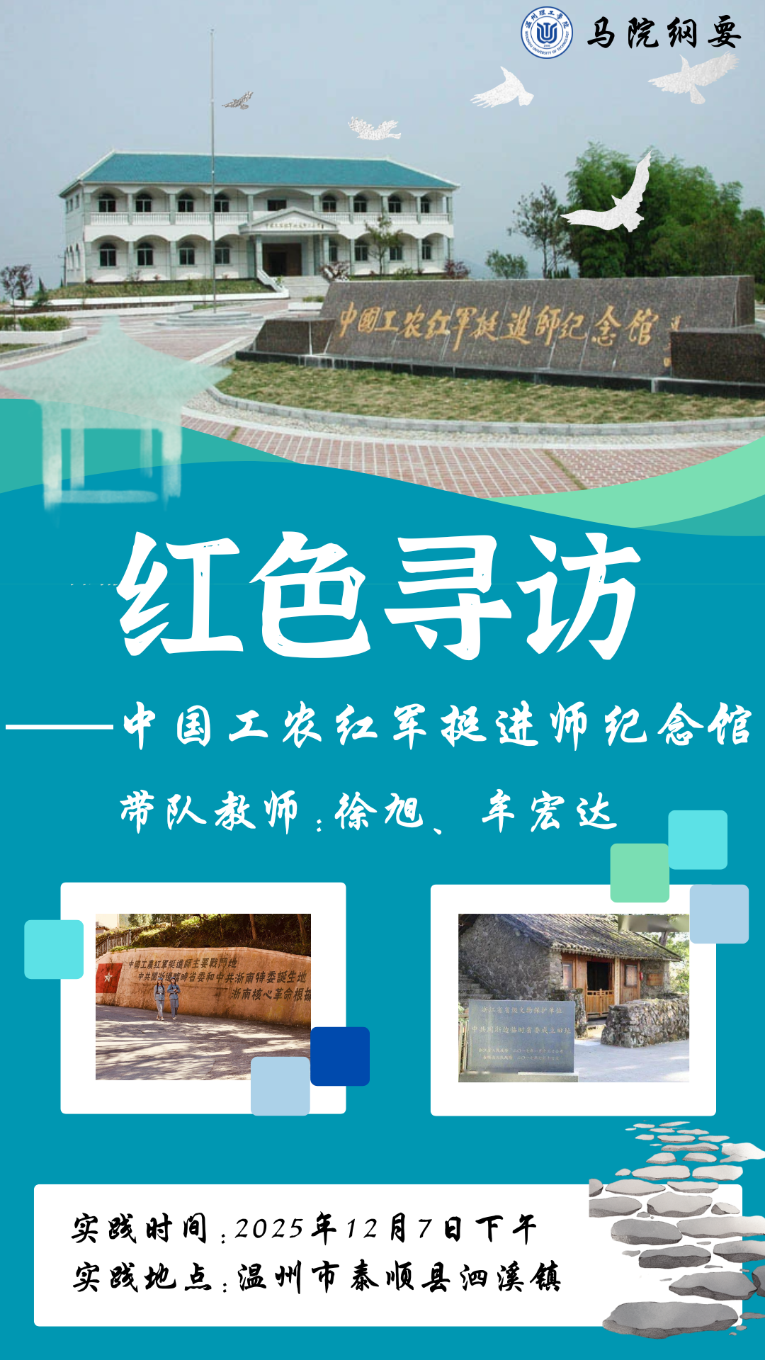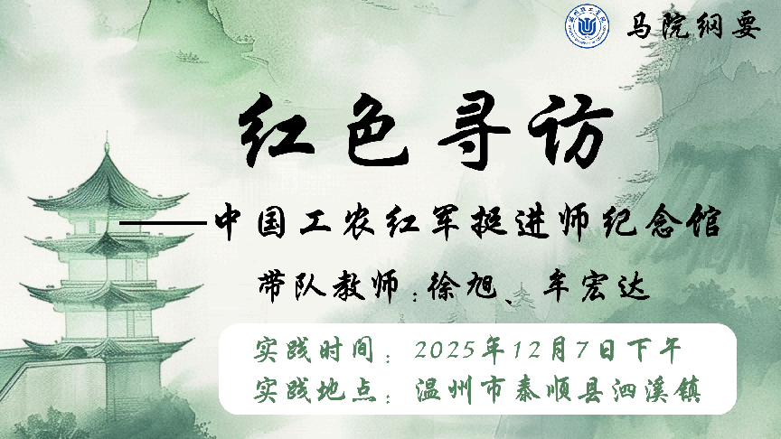 2025年12月7日,阳光明媚,而冬日的暖阳又为浙南大地镀上一层金色光辉。在这晴朗而温暖的日子里,温州理工学院95名大一学生,在马克思主义学院徐旭、牟宏达两位老师的带领下,走进“中国工农红军挺进师纪念馆”这座承载着革命记忆的圣地。纪念馆外的明媚阳光与纪念馆内的历史光影交织,而当下和平年代的生机勃勃,也与1935年挺进师战士们在浙南山区的浴血奋战形成鲜明对比。这一切,让“初心”与“使命”二词在温暖的阳光下更显厚重与鲜活。