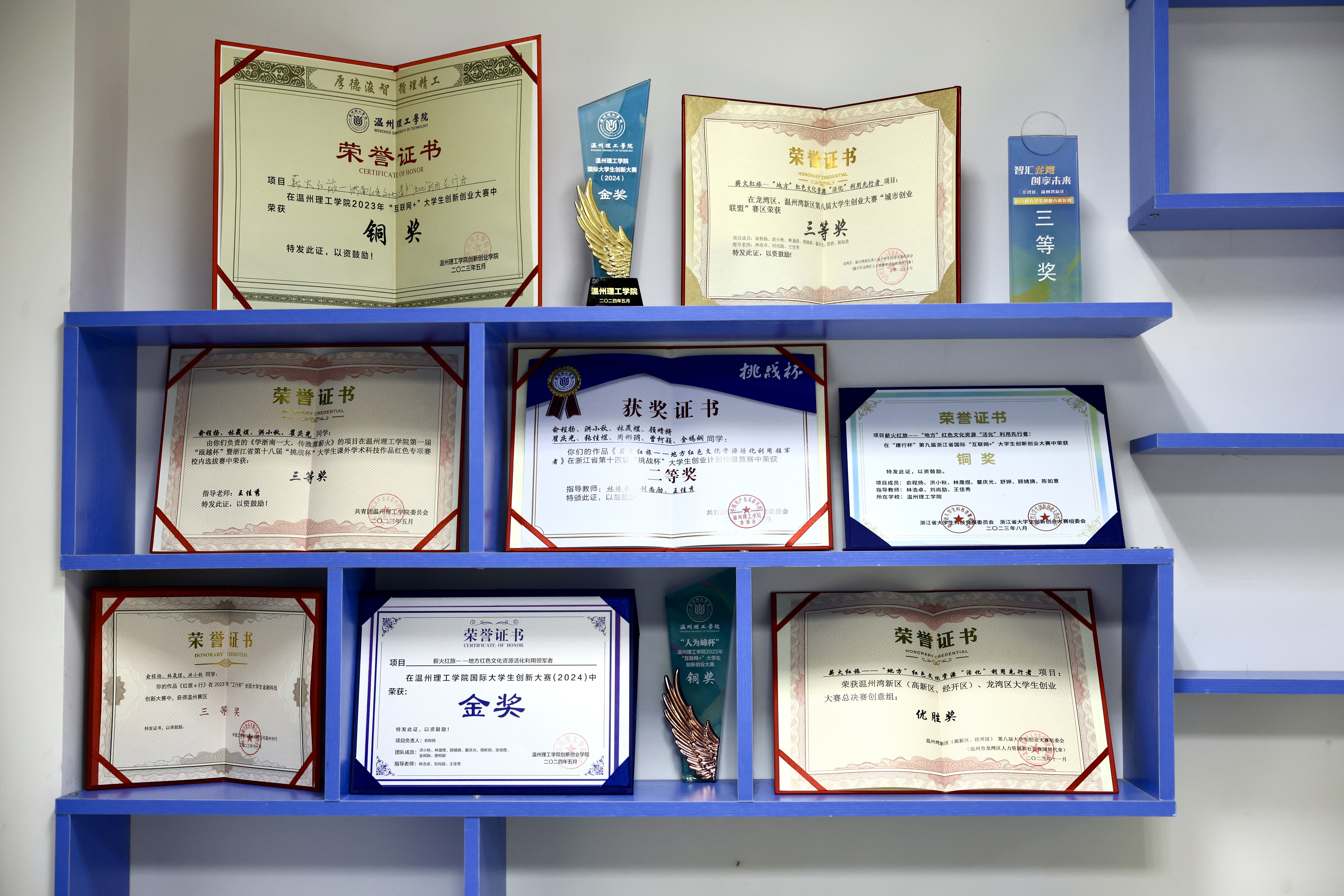 薪火红旅团队在各项赛事中凭借着坚韧不拔的毅力、卓越的专业能力和紧密无间的协作,在众多赛事中脱颖而出,取得了一系列的荣誉。2024年7月19日至21日,由浙江省教育厅、共青团浙江省委员会等主办的“建行杯”浙江省国际大学生创新大赛(2024)决赛在杭州师范大学举行。国际大学创新大赛是近年来规格最高、覆盖面最广的大学生创新创业顶级赛事,经过激烈角逐,其中我院薪火红旅团队项目《薪火红旅——地方红色文化资源活化利用领军者》获“青年红旅筑梦之旅”赛道公益组银奖。